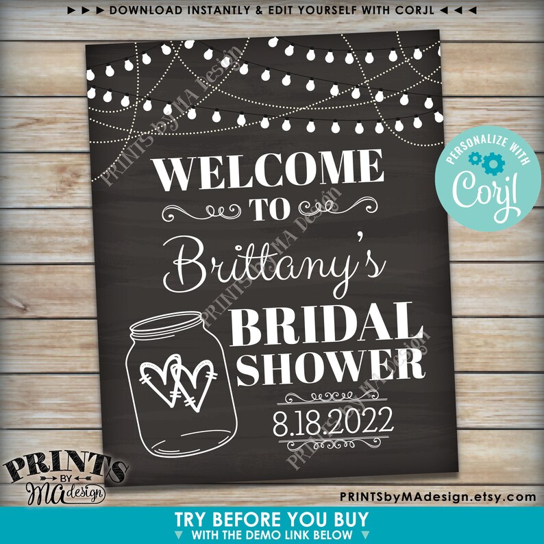Check out our bridal shower welcome sign selection for the very best in unique or custom, handmade pieces from our party decor shops. Join the party by signing up for our mailing list Instantly download this chalkboard diy bridal shower invitation, which you can edit yourself and print as many as you need! You can either hang it by the seats or place it on a table. Welcome to anna's wedding shower styled, and planned, by ashley lindzon events.